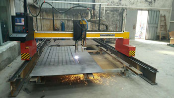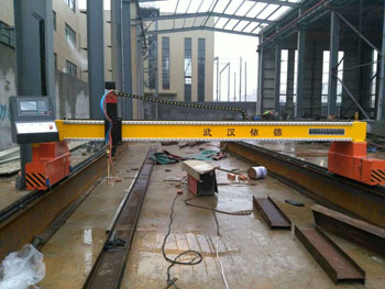這款機子為小龍門數(shù)控單火焰切割機,整機采用數(shù)控火焰切割,配備1把火焰割炬,主要針對碳鋼板純火焰切割。整機跨度為3000mm,長度標準配置為6000mm,可根據(jù)要求延長至9000mm、12000mm等。碳鋼板切割厚度為:6-150mm。